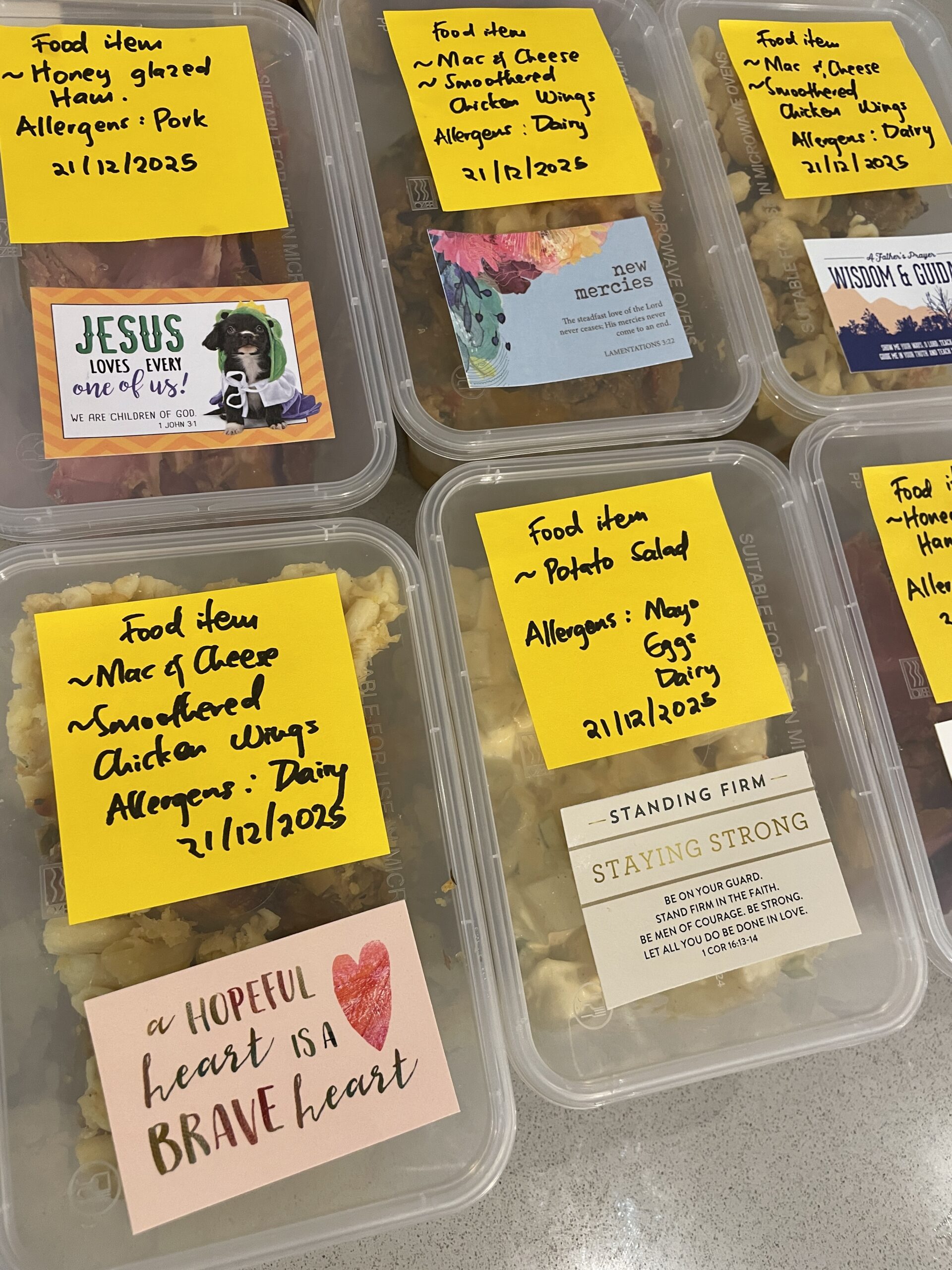 Cooking is one of my greatest passions. I love expressing love through food, whether it’s sharing a meal with friends and family or preparing something special for others. During a wilderness season, when I didn’t have many people to share meals with, God inspired me to turn that love outward by preparing home-made, food-safe meals accompanied by encouraging messages from Scripture for the most vulnerable in our community. We are led by how Jesus fed people in His earthly ministry (Matthew 14:13-21). Today, we’re partnering with registered food pantries across the ACT to make this vision a reality every month. I’d love to invite you to partner with us and help extend this act of love even further—your donation can make a real difference in feeding both hearts and homes.